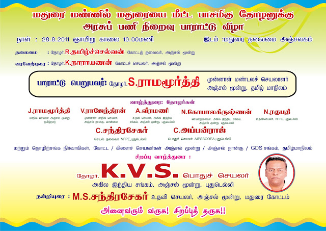 நன்றி : நம் தமிழ் மாநிலச் சங்கம் அமைந்திட முழு முயற்சி எடுத்திட்ட நம் சங்க அகில இந்திய தலைவர் தோழர். கிருஷ்ணன்
