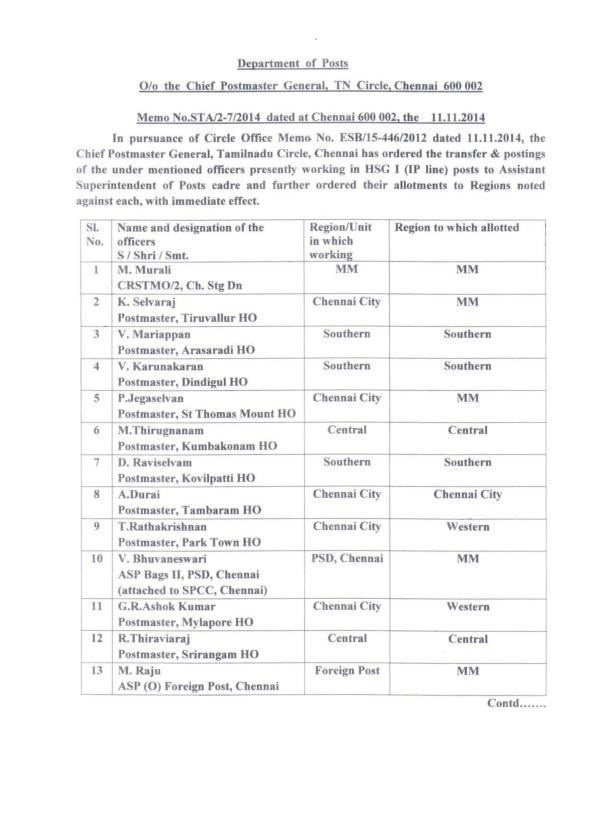 தொடர்ந்து இது குறித்து நாம் நினைவூட்டு அளித்து வந்தோம்.மேலும் நம்முடைய பொதுச் செயலாளர் தோழர். N .S . அவர்களிடமும் இது குறித்து DTE இல் பேசிட கோரியிருந்தோம் . தற்போது இதற்கான நடவடிக்கை எடுக்கப்பட்டு முதற்கட்டமாக IP LINE POSTMASTER பதவிகளில் இருந்த ASP அனைவரும் தற்போது இடமாற்றம் செய்து உத்திரவிடப்பட்டிருக்கிறார்கள் என்பதை மகிழ்ச்சியுடன் தெரிவித்துக் கொள்கிறோம்.